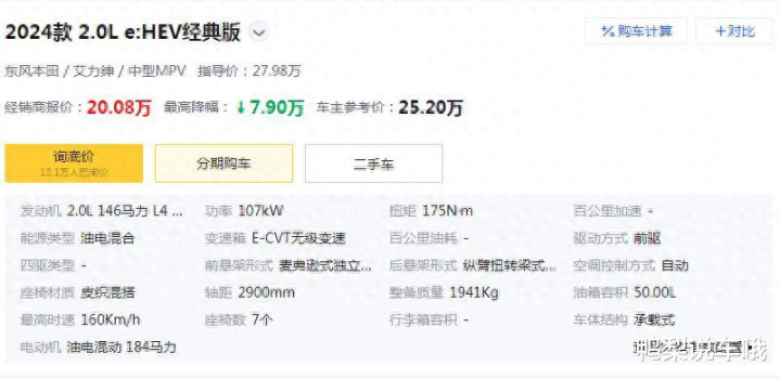 面对如此惨淡的销售表现,经销商不得不大幅降价求生。2024款艾力绅是在2023年7月正式上市的,官方指导价在27.98-33.18万之间,共推出经典版、舒适版、豪华版、至尊版四款车型。如今终端市场最高降幅达到7.9 万,像至尊版官方指导价33.18万,优惠后经销商报价25.28万;经典版优惠后约20.08万,舒适版 21.98万,豪华版23.18万。这样的价格相比之前亲民了不少,按说应该能吸引不少消费者,可销量却没多大起色,实在让人有点摸不着头脑。