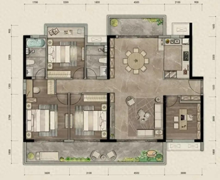 再看看卧室,南向有三个方方正正的卧室,能让你在秋冬季节享受到最温暖的阳光。阳光照在身上,仿佛所有的烦恼都被驱散了。北侧还有一个小书房,在这里可以安静地看书、工作,享受独处的时光。