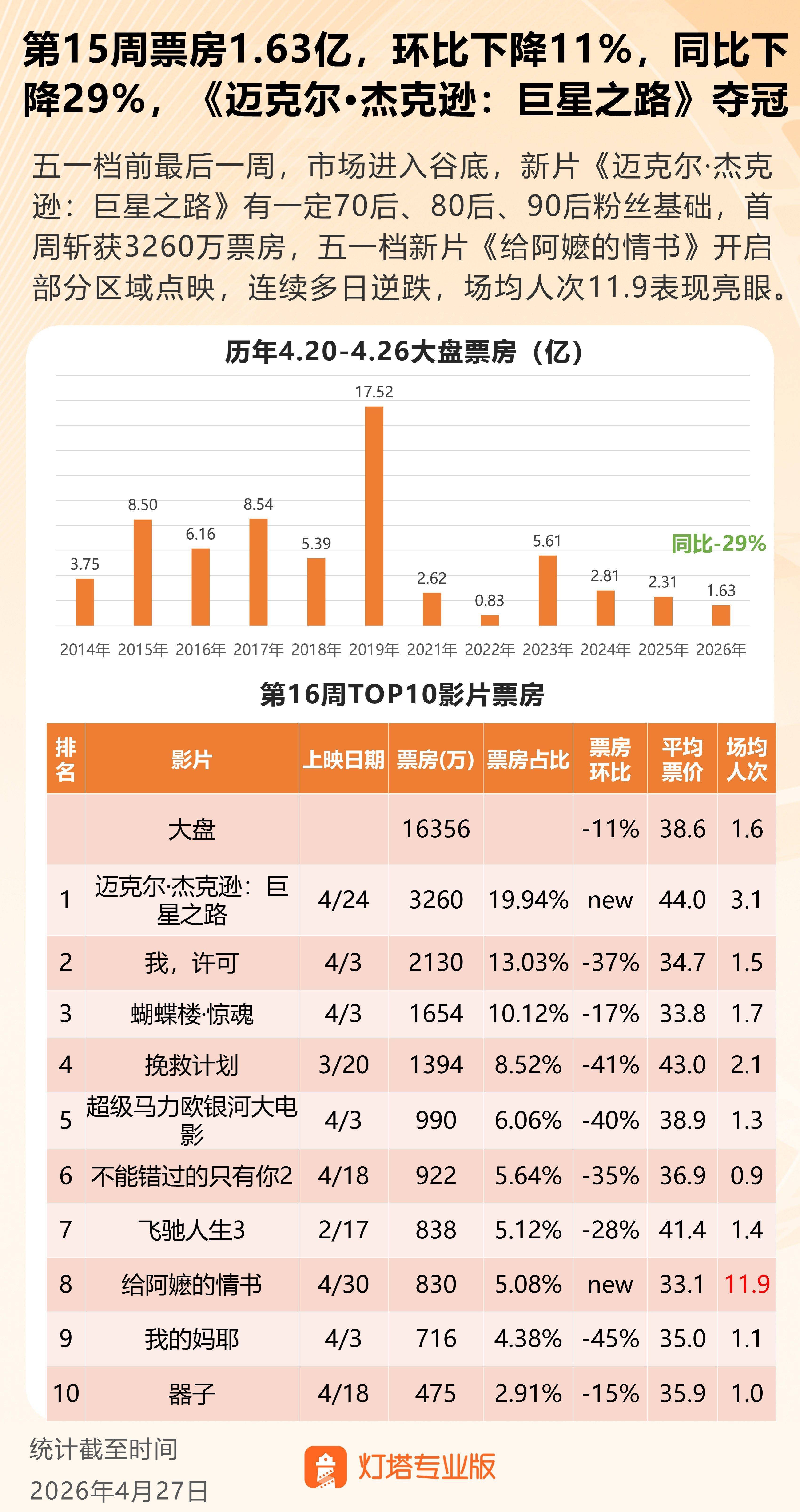 四川股票配资网平台 第16周票房1.63亿,《迈克尔·杰克逊:巨星之路》票房周冠